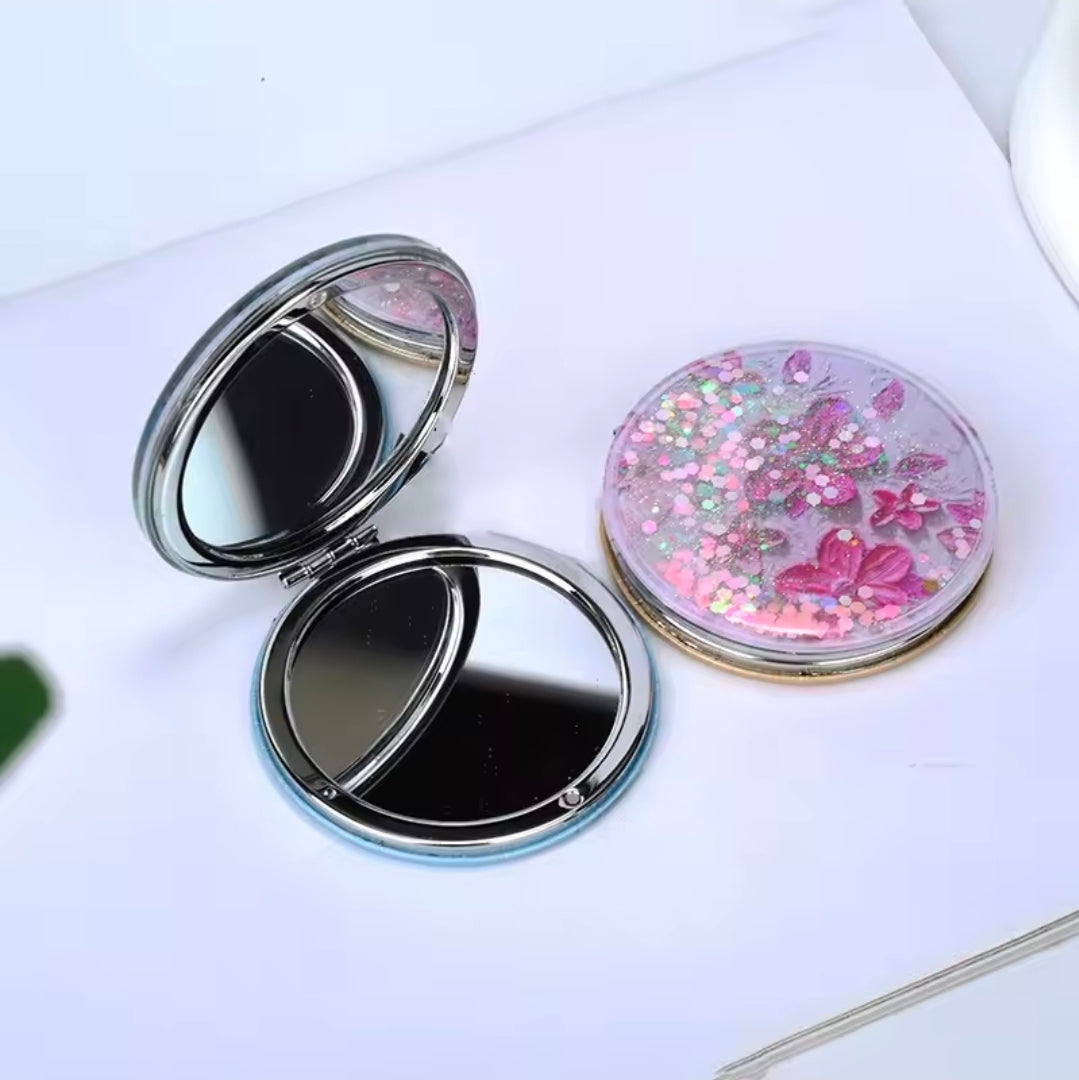 ¡Nunca pierdas tu estilo! Con este práctico espejo doble de bolsillo, siempre tendrás un diseño único y al azar en tu mano. Refleja tu personalidad con este accesorio. Te llegara un diseño al azar ✨️