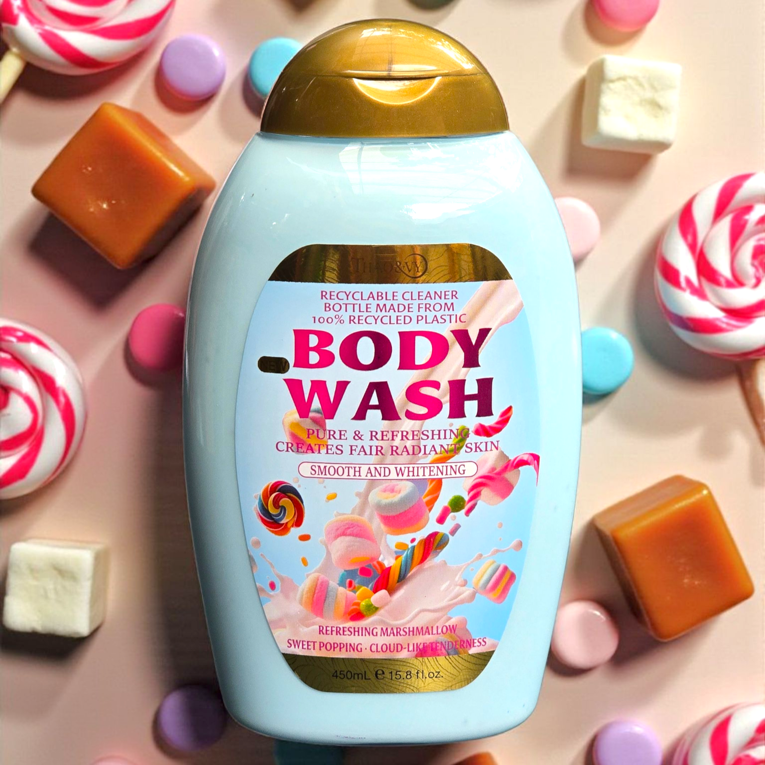¡Sumérgete en una experiencia de ducha indulgente y de ensueño con nuestro gel corporal con aroma a malvaviscos! Deja que el delicioso aroma te envuelva mientras limpia y suaviza tu piel, brindándote un momento de dulce relajación. ¡Disfruta de una piel suave y un aroma irresistible todo el día!