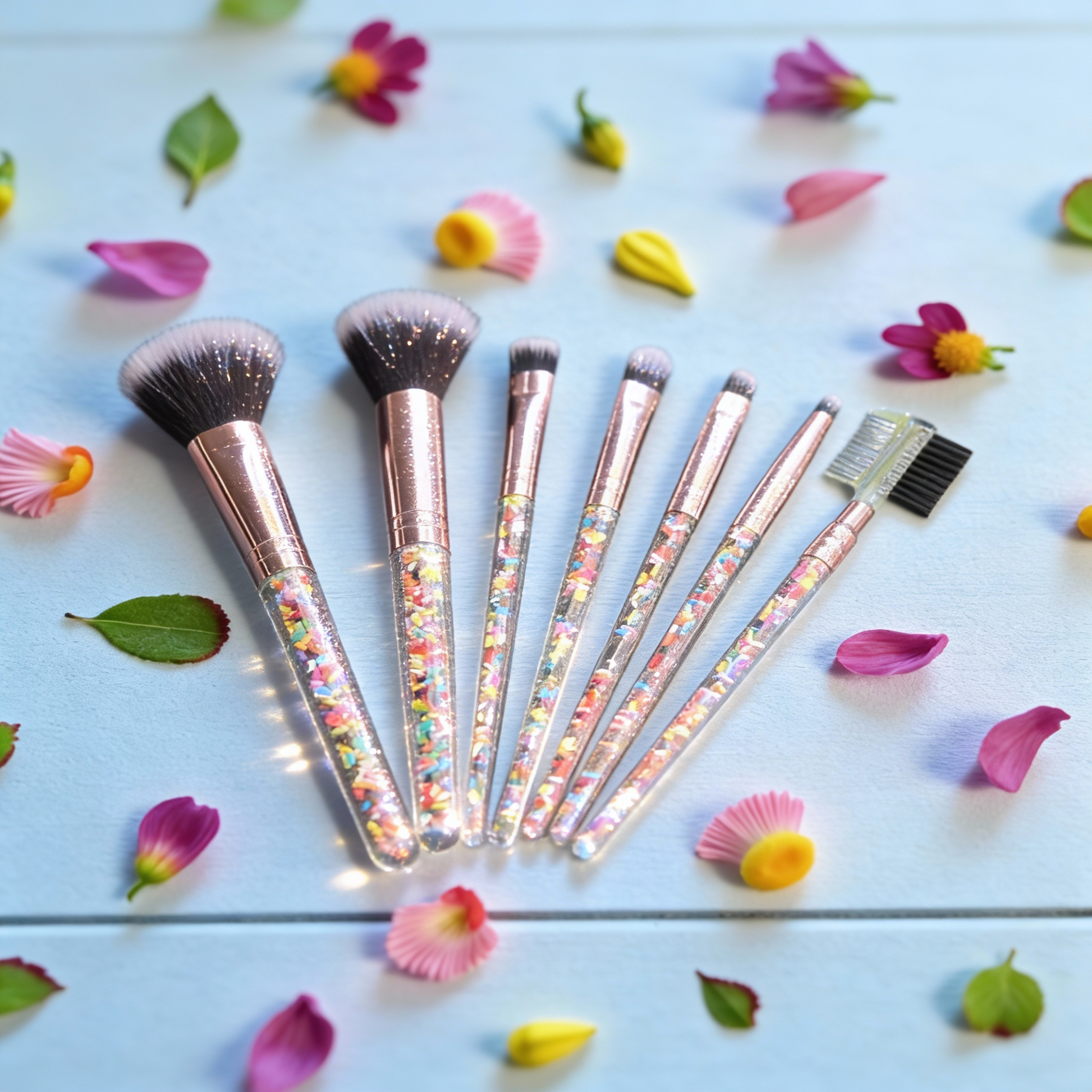 ¡Mejora tu estilo con nuestro set de brochas básicas! Cada brocha cuenta con un mango único y colorido diseñado con chispas, añadiendo un toque divertido y original a tu rutina de maquillaje. ¡Obtén un look perfecto con estas brochas de calidad y estilo!