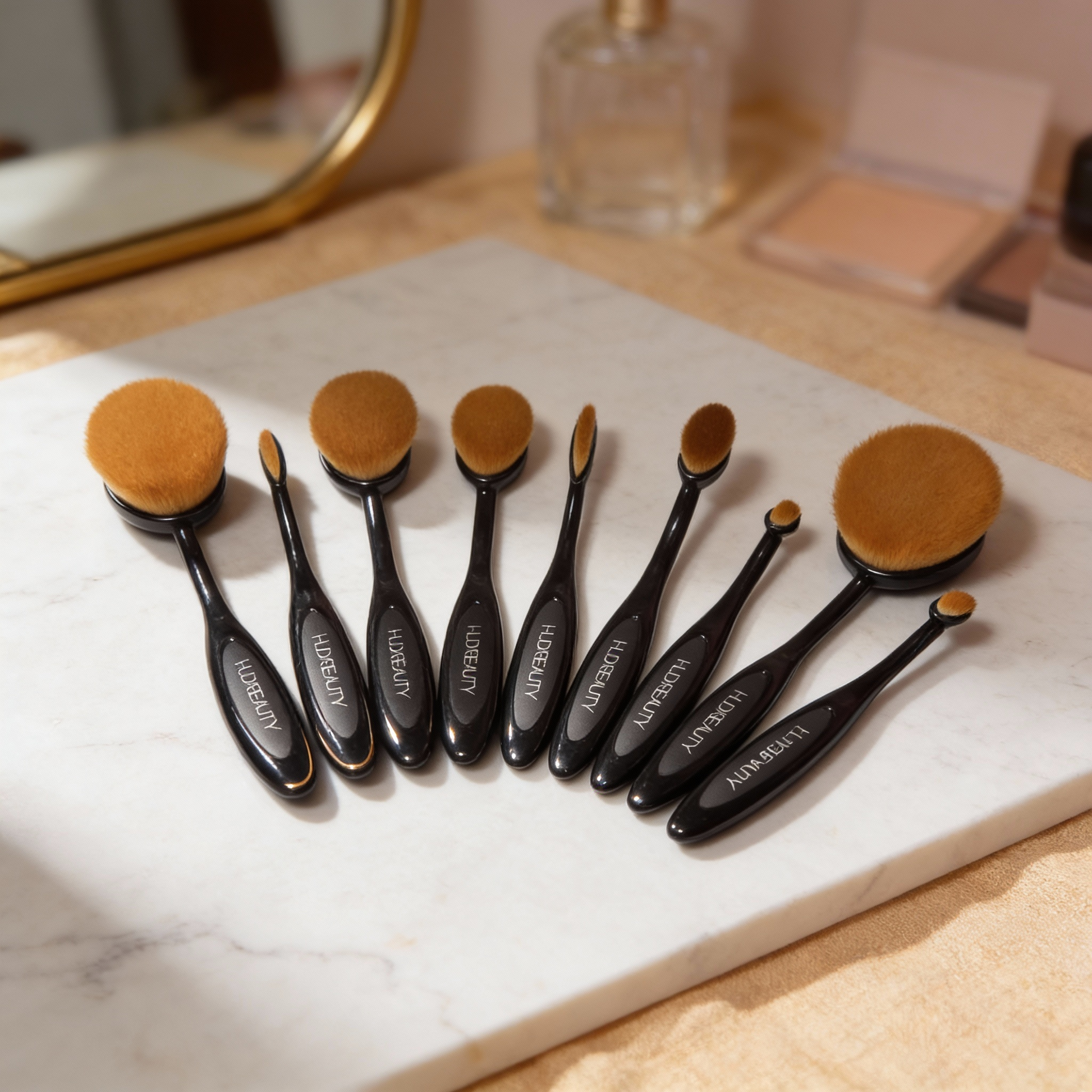 Este Kit de Brochas semi profesionales incluye un conjunto de brochas suaves y ovaladas que te ayudarán a lograr una aplicación de maquillaje perfecta. Las brochas suaves brindan una sensación agradable en tu piel, mientras que su forma ovalada facilita la aplicación y difuminado de productos para un acabado impecable.